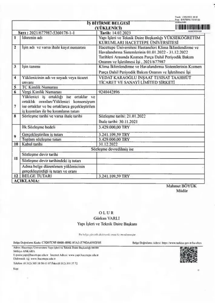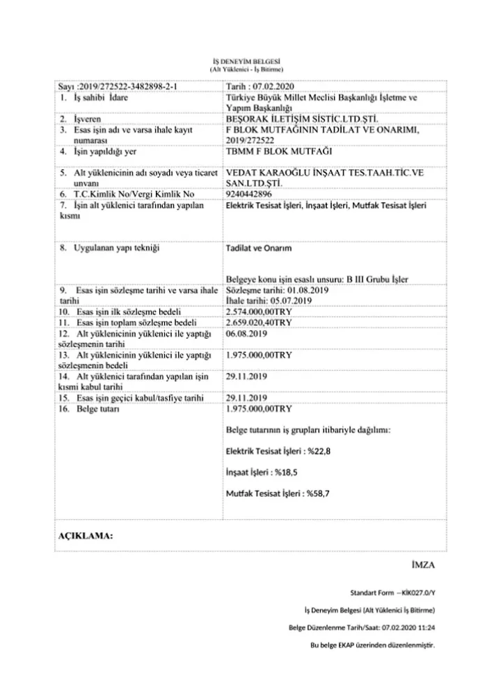 Tamamladığımız projelerden aldığımız iş bitirme belgeleri, sahip olduğumuz güvenilirliğin ve yıllara dayanan tecrübemizin göstergesidir. Her belge, yaptığımız işlerde gösterdiğimiz özveriyi ve müşteri memnuniyetini yansıtır.